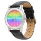 抽象芸術水絵を描色ストライプレインボー 腕時計