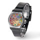 抽象芸術波とカラフル3D宝石 腕時計