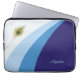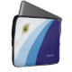 抽象芸術モダン波の青い色合いと孔雀の羽根ラップトップスリーブ。名前はパーソナライズされた。