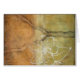 このジェニファー・ゴルdbergerの背景絵画は、フォークの亀裂が入ったテーブルのように見える。白い花の抽象芸術シルエットも絵を描あり、わずかに茶色の背景を覆っている。