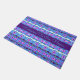 ブルーとパープルのパタモダンーンのドアマット、私たちのホーム文字へようこそパーソナライズされた任意のメッセージや文字に取り外し可能。紫色の背景とストライプスタイルを任意の色に切り替え飾て、この花のデザイン。