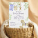 可愛い赤ちゃん服を並べてドライラインにぶら下がった飾った赤ちゃんシャワーの招待、可愛いバニー、愛らしいロッキングホース詰まった、そして軽い緑のと繊細な枝に囲まれた全てのアイテム。
