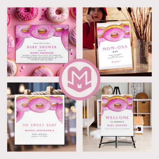 振りかけるドーナツ水彩ピンク赤ちゃんシャワー 横断幕