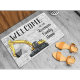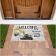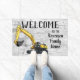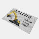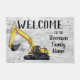 「Your Family Name」ホームへようこそ。または、ビジネス名または会社に変更する。ヘビー機器オペレータのための掘削機をテーマにしたウェルカムマット。ファミリ名をカスタマイズする。