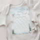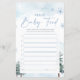 推測ベビー食べ物ゲームカード冬の赤ちゃんシャワーゲームテーマと松の木と雪。これらのゲームカードを簡単にパーソナライズし、多かれ少なかれ推測フィールドを作ることができる。