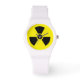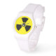 黄色の背景に黒い放射性の記号。このハンサムな時計はスタイルを放つ!
