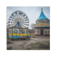 放棄されたカーニバル空の観覧車とテント メタルプリント