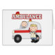 2本の棒の姿EMTsおよび救急車のTシャツの"救急車"を、ボディスーツ、マグ、磁石、トートバック、ステッカーおよび他の消防士の衣類およびギフト読む文字が付いている救急車。