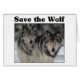 2匹のオオカミの美しい写真で、その上に救オオカミの言葉が載っている。狼はリストラされた。これは、再び北アメリカの狼のための災害を綴ることができる。これらの美しい動物への支援を示す