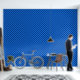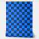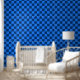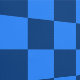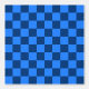 青と濃い青のチェック柄のパターンで、幾何学的で左右対称のデザインを生み出しています。交互に並ぶ四角形は、クラシックで整然とした印象を与えます。