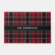 文字付き紅黒格子状タータンチェック模様 ドアマット