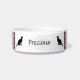 白いセラミックのキャットフードはカッコいい、ヴィンテージに見えるカラフルの痛みを背景にしている。「パーソナライズ」オプションに猫の名前を追加すると、その名前が2つの猫グラフィックの間に表示される。HAMbyWhiteGlove