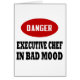 赤いおもしろい危険のサインと言葉のエグゼクティブシェフの機嫌の悪いtシャツとギフト。