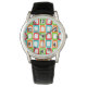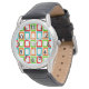 このメンズウォッチは、赤、オレンジ、モダン緑、ターコイズの斜めの長方形を繰り返す世紀半ばのデザインを持つ。