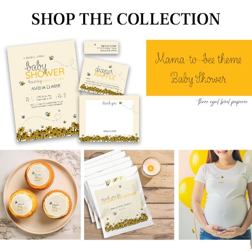 「ママとビー」の赤ちゃんシャワー用のTシャツ。デザインは蜂やハートをブンブン飛ばす。