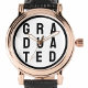 新しく卒業した学生のために。大学院生の腕時計は、単語を3行に分割し、ボックス枠の中に含まれて「卒業」と言う。