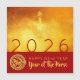 赤いモダン黄金の願いを持つ黄金のテクスチャ紙とデザイン(印刷された画像)と大きな中国の2026赤の+小さな馬の紙カットアウトと黄色の文字で黄色の裏地に馬の幸せな新年と年。デザインは正方形の磁気カード上。ボタンで簡単に年クリック替えカスタマイズる。あいさつカード、休日はがき、ステッカーなど早く…2026年の新モダン年中国のを迎える最適。