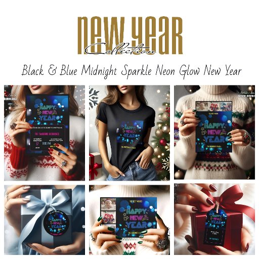 Black & Blue Midnight Sparkle Neon Glow New Year デザイン: Houria Sabrine