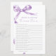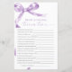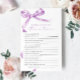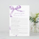 ラベンダーボウ「新郎新婦のためのトリビア」ゲーム – 繊細な紫色の弓デザインを備えたこのゲームカードでカップルのシャワーにいくつかのおもしろいを追加しま魅力的す。この「新郎新婦のためのトリビア」ゲームは、ゲストとスタイルのカップルのエンゲージに最適祝である。スクリプトエレガントとアクセントフェミニンで、このゲームカードは任意のカップルのシャワーテーマに美しい追加である。***お店の検索でH141を入力して一致するすべての項目を検索***または当社のラベンダーボウ赤ちゃんシャワーコレクションを参照してください。***この高品質デザインはシャワカスタマイズーの色、スタイルおよびテーマに合わせるための簡単である。さらにカスタマイズする場合はクリック、「デザインツールを使用して編集」リンクをクリックし、デザインツールを使用してこのテンプレートを変更する。要もし件救済又は一致する品連絡目を下さい
