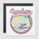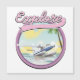 美しい軽航空機とヤシの木で旅行のロゴを探索する。