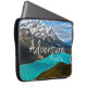 このラップトップスリーブは地球の速歩馬のために完全です! それはBanff、アルバータ、カナダのPeyto湖の素晴らしい背景を特色にします。 山の眺めおよびターコイズ湖の上に単語"冒険白い文字で待ちます"はあります。