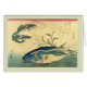 Hiroshige著Woodblockのプリント; Aji muroajiおよびEbi (シマアジおよびprawm); 版権が切れたので1832.Thisイメージ(か他の雑誌新聞広告欄案内公有地に)あります。