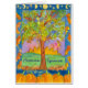 自然かわいらしをテーマにした秋分のグリーティングカード飾は、太陽が緑の丘の後ろに沈む秋イラストレーションとカラフルが水の色でアクセントと月と星と離れのの木と共にを持つ。