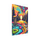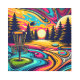 レトロのディスクゴルフコースサイケデリック、夕日、満月、旋回カラフル水と。