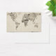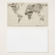 アンティークスタイルの背景に違う、古いポストカードのコラージュ、言語、さまざまな国の切手で作られた世界の地図。