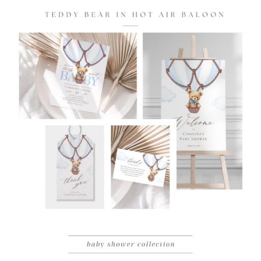 早く待てよ!ホットエアバルーンベビーシャワー招待状。一致するアイテムが使用可能。