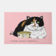 早く食べたいと思う彼女の空っぽの丼の横に可愛食べ物を与えい三毛猫。