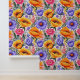 明るいはっきりした紫と黄色のケシの実は 壁紙