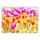 チューリップはオレンジ、黄色い、ピンクでおよびあなたの日への陽気な暖かさのための紫色絵を描かれます。