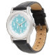 明るいティール(緑がかった色)と白猫の柄 腕時計