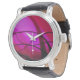 明るいピンクと黒の流れる抽象芸術時計 腕時計