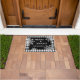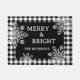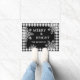 フェスティバルの休日のメリーdoormatと明るいタイポグラフィとスノーフレークのパターン。黒と白の格子枠は、休日の歓迎の屋外ドアマットに素朴な外観を追加する。