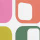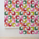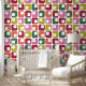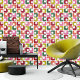 明るいレトロなスタイルプリントを特徴パターン(の模様が)あるとする、この皮とスティックの壁紙であなたの部屋を盛り上げる。白お洒落の赤モダン、緑、オレンジ、ピンクとライムグリーンのレトロ1970年代の幾何学的なプリントこの自己のスティック紙。