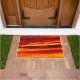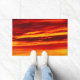 このデザインは、赤い背景に黄色とオレンジ色の様々な色合いの雲のイメージを備えている。美しい夕焼けの景色だ。