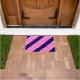 明るい赤紫色と白ストライプい5色の青 ドアマット