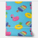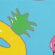 プール飾ハウスや夏期touchを次の工芸品プロジェクトに追加しパターン(の模様が)ある、この剥離とスティック壁紙を使用。私のイラストは、明るいプールの青い背景に対して、明るい夏の色でインフレータブルプールの浮き浮きを組み合わせている。