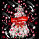 この美しいデザインは、クリスマスのテーマ華美を、輝き飾と輝くクリスマスの木、深いの夜空、輝く星と休日のキャンディと共に提示している。色は黒、赤はっきりした、真珠のような白で、木から緑のヒントがある。