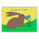 春が来た。春シーズンのグリーティングカードで、長い耳を持つイラストレーションが青とオレンジの花の匂いを嗅ぐ時間を取る。明るく、はっきりしたデザインは黄、緑、青、オレンジ。画像と韻文の著作権© Shoaff Ballanger Studios.