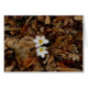 茶色の葉の分野で咲く白いクロッカス。