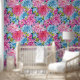 ピンク名門私立校風のとブルーのアスターの花の色合いを微妙なブルーの背景に新鮮な緑の葉スタイルを施したシームレスなパターン。このデザインは、フローラの優雅さと美しさを融合させコンテンポラリーている