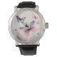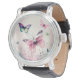 春喜び水色ピンクの蝶の時計。春の喜びカラフル-自然の水飛んでいる色の蝶絵を描と花の蝶。女性の日、誕生日、または個人的な使用で贈るのに最適。