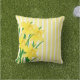 この明るい黄色と白の枕で、あなたのポーチまたはパティオにあなたの家族とゲストを歓迎ストライプの。この枕はグラフィックでデザインされた水仙の花束を特徴とし、イースターと母の日にこの枕を使用する。
