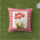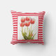 赤い飾チューリップの枕で外の生きスタイリッシュ宇宙。この枕はグラフィック赤と白デザインのチューリップの花をオーバーレイした背景を備えている。裏面は赤無地のい。外買地で示すように、または屋内の生地を選択する。春シーズンやイースターや母の日の休日にチューリップ飾り枕を備える。