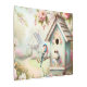春パステルフラワーアンドバード付きバードハウス メタルプリント