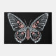 赤い白いライン石のダイヤモンドで宝石を飾ったライン石の蝶ラグ。ようこそスパークリーきらきら光るチバタフライマットホームデコル。手描き数々のの宝石は飾黒い背景に蝶の形をしているフロントまたはバックドアやキッチンラグマット、あなたのテキスト、色カスタマイズ、あなたの好みに合わせて宝石で飾られたバタフライマット上のスタイル。注:ライン石は実際ではない、これは蝶スナップ上の手描き宝石デザインである。