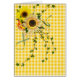 ヒマワリの花束とギンガムの背景。